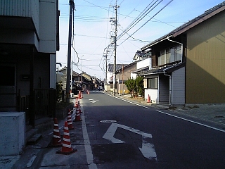 古い町並を抜けると新しい家がちらほら。 道も広くなって歩道もある。 |