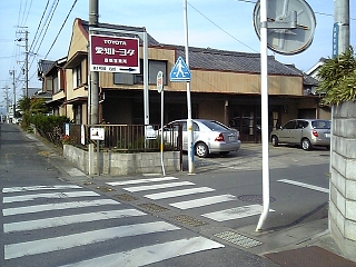才ノ木交差点を渡る。 ここ、トラック多いんだよね。 |