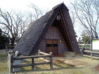 弥生時代の住居が復元されてる。 でもうまく作りすぎとの感も・・・。 |