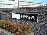 赤坂宿を出ました。 道にはちっちゃな松が3本。 その右は音羽中学校。