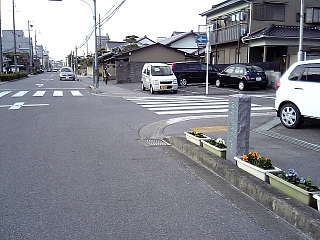 西本陣跡前の交差点で左折。 ここが4曲り目〜。