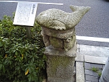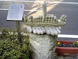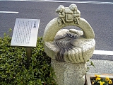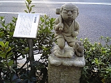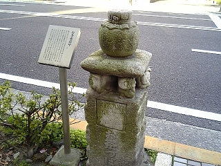 店の前には茶壷?の石像。 岡崎宿伝馬歴史プロムナードが始まる。 道端には他にも妙な石像?がズラリ。 |