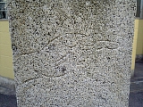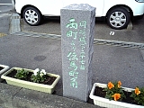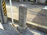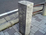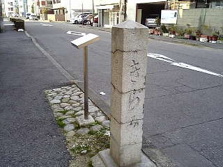 13:45 十字路で石柱発見〜。 「岡崎城下二十七曲 両町より伝馬町角」。
