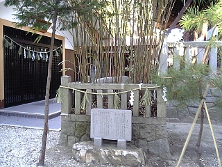 というわけで矢作神社に寄り道。 境内に日本武尊が矢を作ったという竹が!