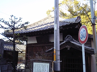 戻って東海道に入る。 入ったところが岡崎27曲り終了地点〜。 お疲れさまー。 すぐ右には勝蓮寺がある。 付近に一里塚もあったはずだけど何も標示がない。 |