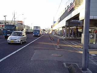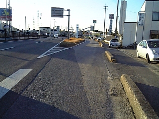 矢作町猫田交差点で国道1号に合流〜。 車道は左へカーブして合流だけど・・・。 このまままっすぐ進み合流が東海道っぽい。 |