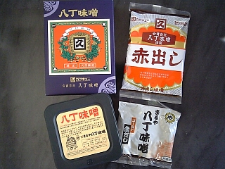 本日のお土産はもちろん八丁味噌。 上はカクキュー、下はまるや。 右側はどちらも見学者用試供品。 |
