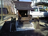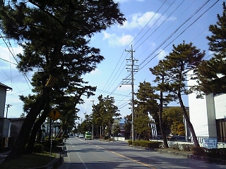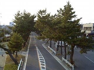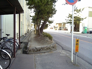 わっ、歩道が松で通せんぼ。 しかも凍結注意ですよー。 凍ってなくてヨカッタ。 |