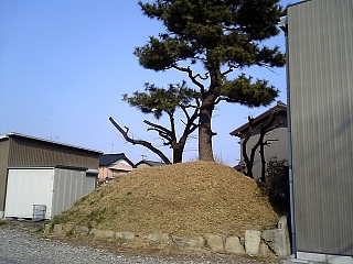 無量寿寺道標を過ぎて来迎寺一里塚。 右塚は公民館の裏。 こんなところに隠れてたのかー。 |