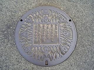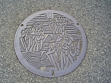 知立市のマンホールはかきつばたの和歌。 でも、ゆっくり読んでると危険。轢かれちゃう。
