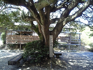 境内中央に大きなタブの木。 大正天皇が皇太子時代に来た記念の植樹だとか。