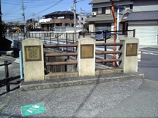 鈴木朖歌碑を過ぎ松野根橋に着く。 欄干には浮世絵とかいろいろ。