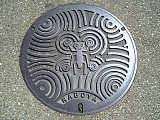 マンホールのデザインは? バッタ?? と思ったらアメンボらしい。 |