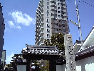 11:57 誓願寺へ。 後ろの高層マンションが大迫力〜。 |