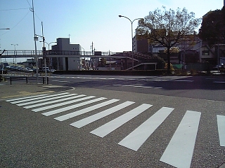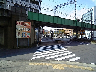 名鉄常滑線の高架が正面に。 東海道は左に曲がるが消滅。