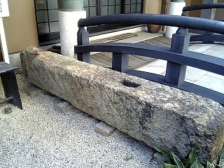 姥堂の下にある裁断橋跡。 ホンモノの桁石が置かれている。 ここは都々逸発祥之地でもある。 |