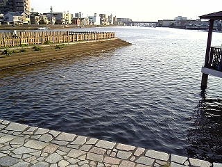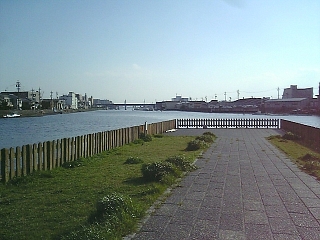 このあたりが七里の渡し舟着場跡。 ここから桑名宿まで海路だ〜。 でも舟がないから行けない。。。 |