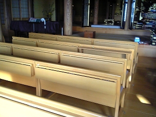 16:23 寄道して法盛寺の洋風な本堂内部。 教会じゃないよ。