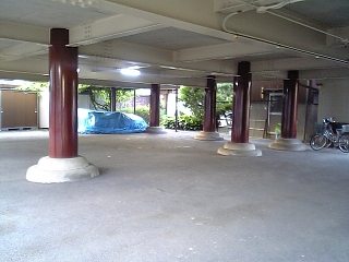 寿量寺の本堂下。 スペースの有効利用。駐車場なの? |