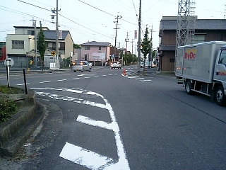 矢田町交差点で国道1号を渡る。 渡りながら左を見ると、、、。 |