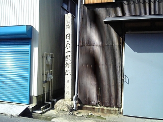 10:06 日永一里塚跡。 建物の間でわかりにくい! なが餅のように長い石柱。 やっぱ日永だから? |