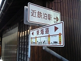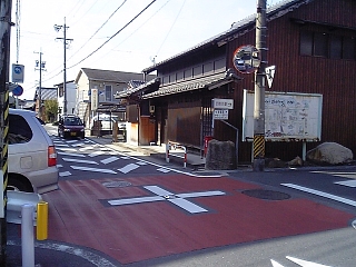 少し進むと旧東海道と伊勢街道が分岐。 ここが日永の追分だ! 東海道は右へ〜。伊勢参りは左へ〜。 膝栗毛の弥次喜多はここでお別れ。 |