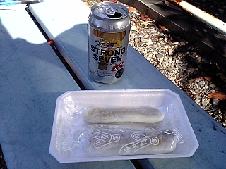 休憩たいむ。 湧き水もいいけど飲むならやはり・・・・。 昨日買っておいた笹井屋のなが餅とともに。 やっぱなが餅は追分で食べないとね。 |
