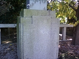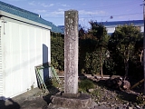 神社前の一里塚跡。 碑の土台はリサイクル。 和泉橋の旧親柱だ。 |