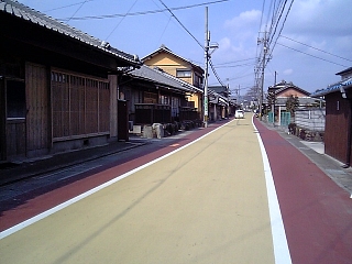 9:17 カラーリングされた道路を歩き始める。 これだけでも一応まだ宿場気分? |