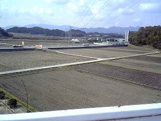 しばらくズンズン進む。 左側はひろびろ〜。 田植えの準備万端って感じ。 |
