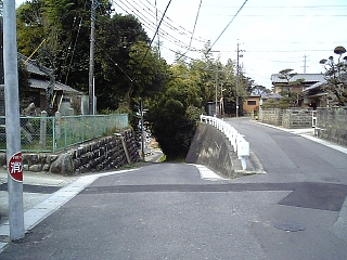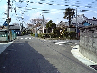 坂を下りたら右へ。 |