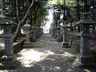 布気皇舘太神社の参道。 灯籠がいっぱーい。