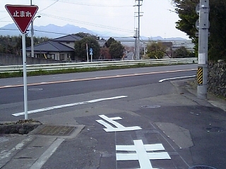 先に進むと広い県道に。