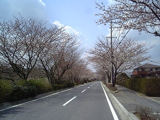 迂回した後は直線道路の太岡寺畷。 桜並木だ〜。