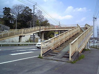 11:50 その先は国道1号。 まずは歩道橋で横断。