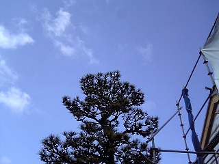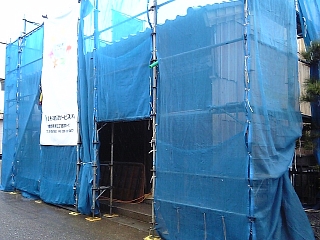 ネットに覆われた建物もある。蚊帳かな? ウソウソ。 工事中だろー。 |