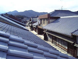 問屋場跡などを過ぎると岩木屋。 酒、味噌、醤油の元醸造業。 むくり屋根が特徴。 |