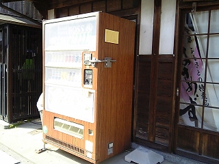 木目調の自動販売機発見! 努力してるなー。 やればできるじゃん。 しかし、自動販売機があること自体・・・・。 |
