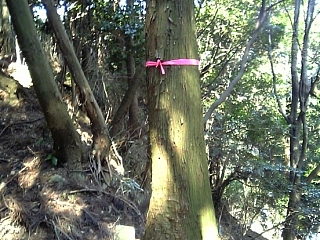 木には何かの目印が。 誰か道に迷いそうになった? 遭難に注意しよう。 |