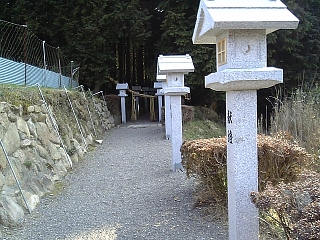 15:27 熊野神社の参道。 新しい灯籠がいっぱーい。