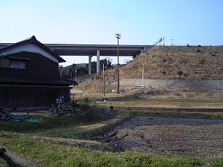 新名神高速道路が見えてくる。 この田園地帯では目を引きます。 |