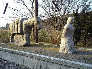 山中一里塚公園の馬子唄の像。 風化してる? それとも元から? これが芸術。