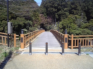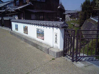 12:43 来見橋を渡る。 瓦屋根付の白壁デザイン。 御茶摘み歌と切絵の陶板がある。 |