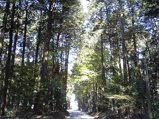 その先は森の中。 高い木がたくさーん。 少し先には高札場跡もある。 |
