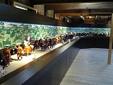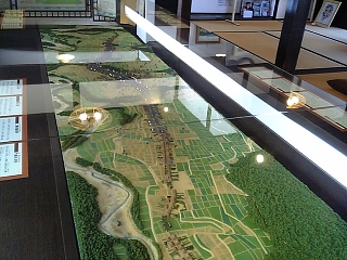 次に本館へ。 1階にはおなじみの宿場ジオラマ。 さすがに横長の土山宿。 |