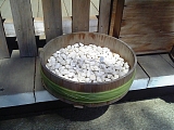 前には白い石。 これ持って拝殿を一周するとイイらしい。 |