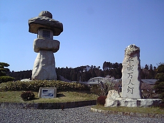 国道沿いの平成万人灯を見に行く。