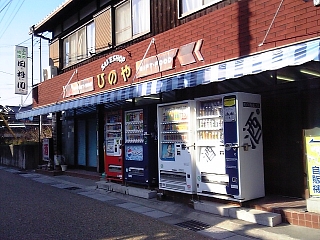 酒屋さん前に自販が並ぶ。 そう言えばノド渇いたなー。