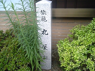 12:44 眞風軒の漢詩碑を過ぎると石柱が。 旅籠 丸屋 跡だ。