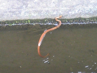 ヘビが側溝の川を泳いでる! やっぱ暑いから? |